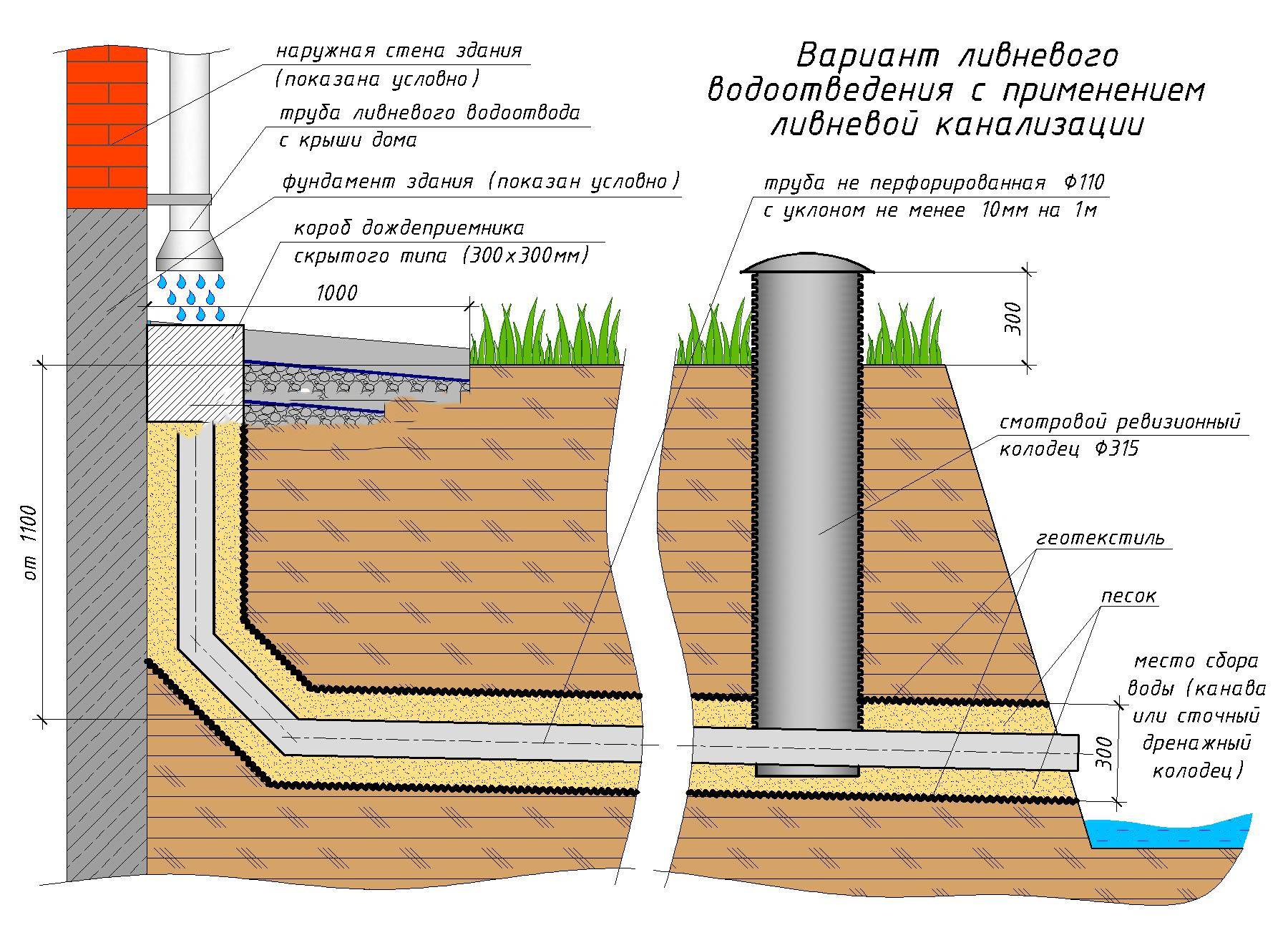 Ci-dessus, nous avons examiné les méthodes d'aménagement des égouts pluviaux. dans la banlieue niveau de collecte d'eau de la surface dans le tuyau. Mais cela ne suffit pas, il faut le retirer du site.