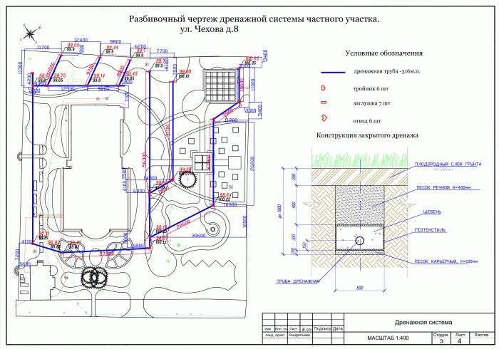 Égouts de drainage dans le jardin doit inclure les éléments suivants :
