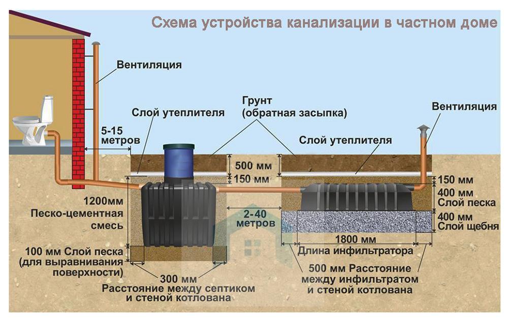 Recommandation! Selon les règles, certaines parties de la structure doivent être posées sous le niveau de congélation du sol, mais elles sont souvent placées plus près de la surface, en isolant les tuyaux, en versant une couche de pierre concassée de 20 cm d'épaisseur dans la tranchée, puis en recouvrant avec du géotextile. Cela réduira les coûts de main-d'œuvre pour les travaux de terrassement.
