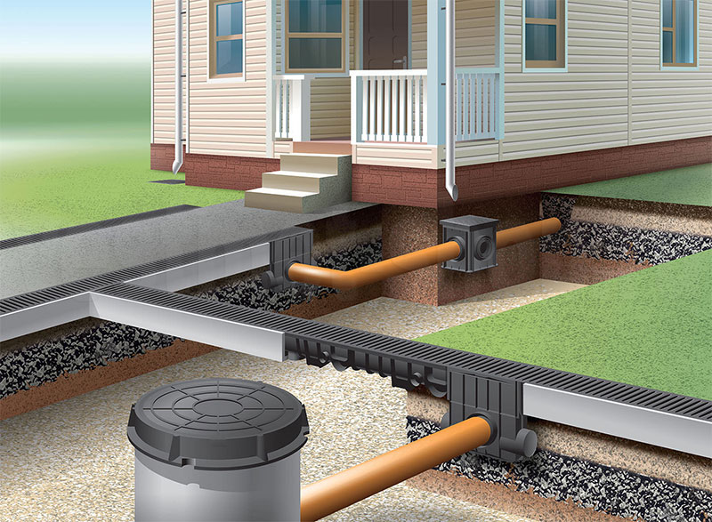 Tous les éléments des égouts pluviaux d'une maison privée doivent être raccordés au système. Voici ce que cela pourrait être :