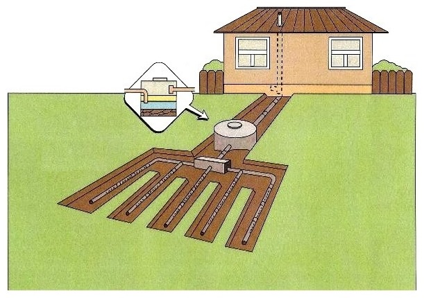 Après le nettoyage dans le dessableur, l'eau pénètre dans les égouts, à partir de là, elle peut être distribuée directement dans le sol, déchargée dans des plans d'eau ou dans le réseau d'égout ordinaire d'une maison privée