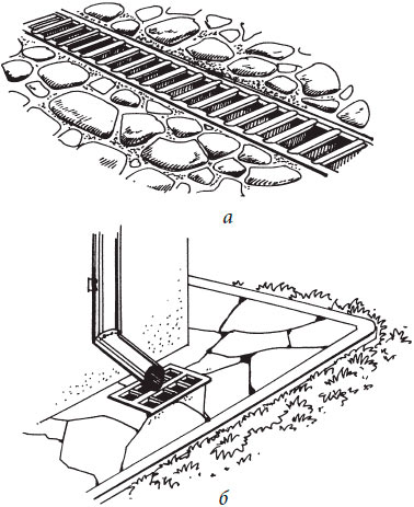 • bacs de réception. Détails pour collecter le liquide de la surface de la terre et le diriger vers les entrées d'eaux pluviales. Généralement utilisé par les développeurs individuels dans les zones rurales.