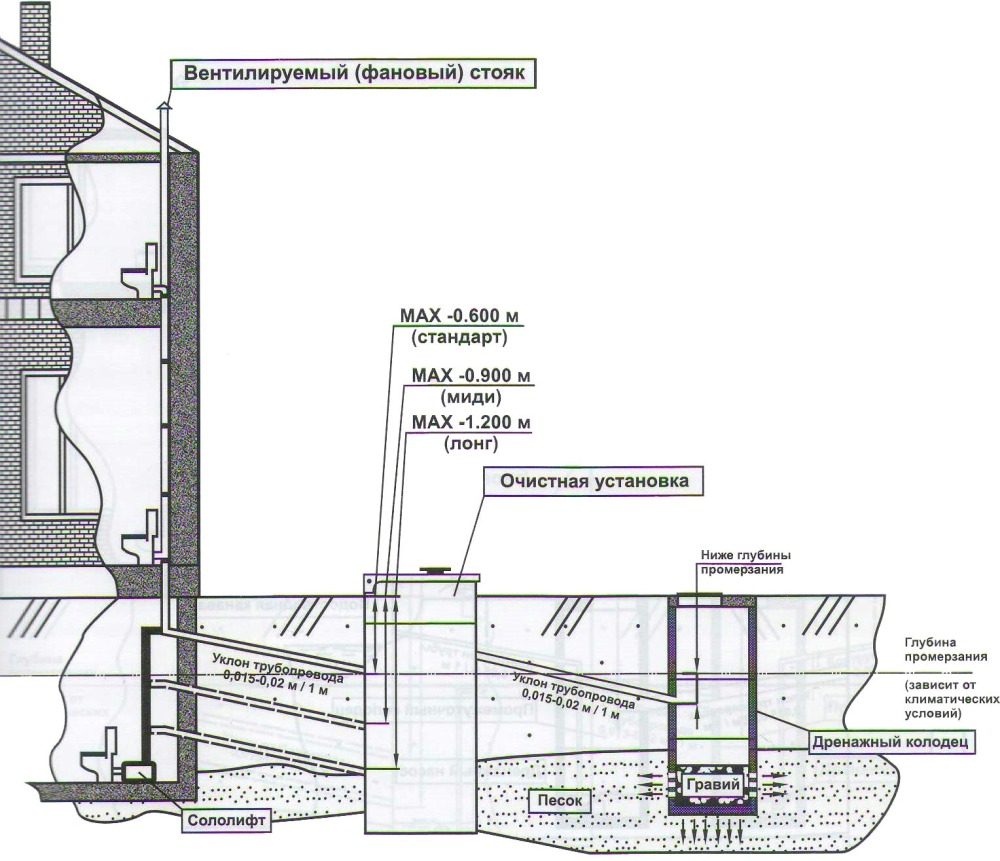 Conformité obligatoire avec SNiP et normes similaires conformément à GOST pour sa fabrication dans une petite zone. Le non-respect des exigences élémentaires entraînera des défaillances dans son fonctionnement. Ainsi, les principales dispositions sont énoncées dans le SNiP 2.04.03-85 «Égouts. Réseaux et structures externes ».