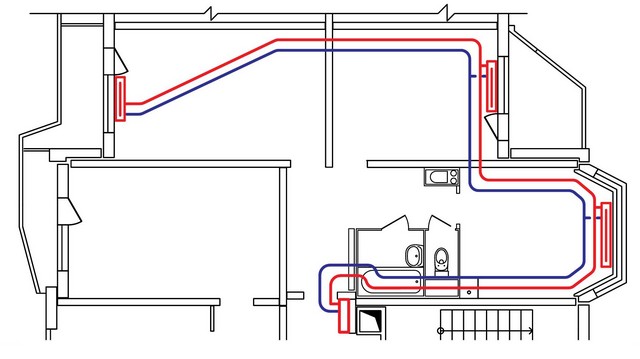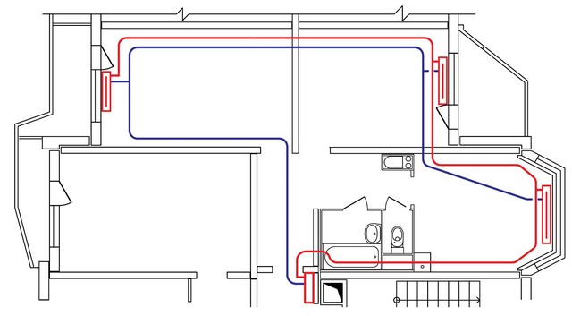 Dans les bâtiments à plusieurs étages, un système de chauffage monotube vertical est utilisé.