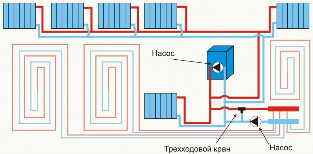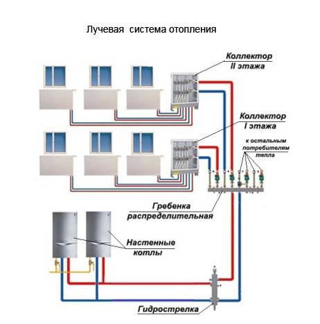 Dans la grande majorité des cas, la mise en place d'un câblage de faisceau nécessite la présence d'une pompe de circulation, et parfois plusieurs, installée sur chaque couronne ou branche.Sa nécessité est décrite ci-dessus. Le câblage du faisceau de l'ensemble du système de chauffage est le plus souvent réalisé sur la base d'une installation à un et deux tubes, remplaçant presque complètement le type de connexion en T.