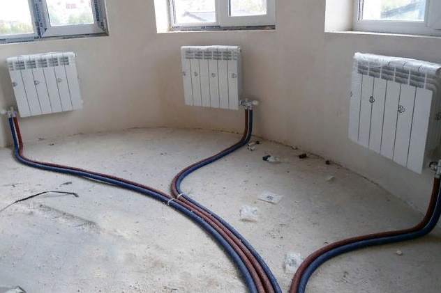 - Dans un bâtiment en construction, il est préférable de faire un câblage de faisceau et de choisir des radiateurs avec une connexion par le bas. Les routes souterraines doivent être isolées et protégées par des ondulations en plastique à l'intersection des murs.