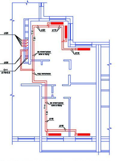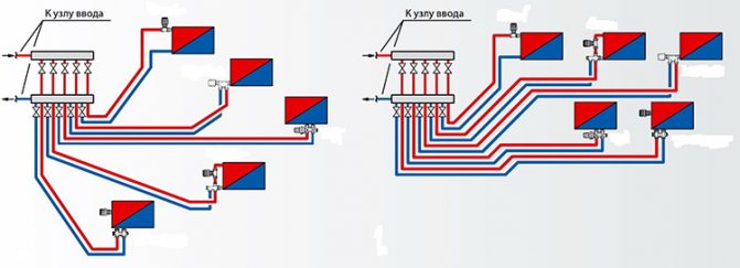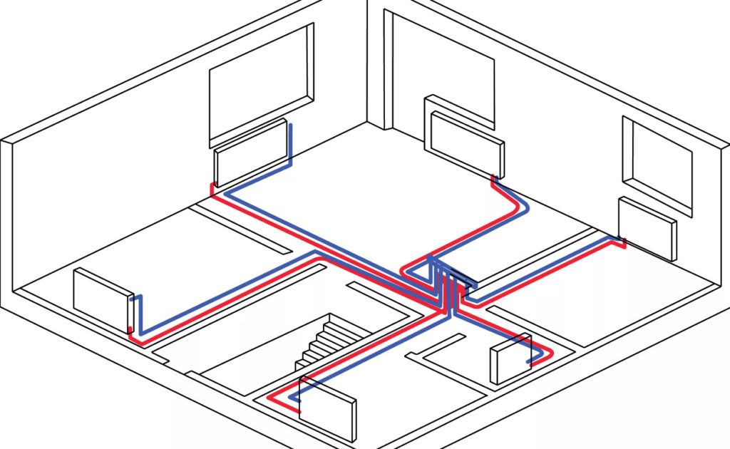 Lors du choix d'un schéma, la préférence est généralement donnée à un schéma étage par étage. Le réseau est réalisé sous un revêtement de masquage au sol. Le collecteur est généralement monté dans une niche pré-préparée dans le mur. Une alternative est une armoire spéciale.