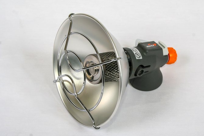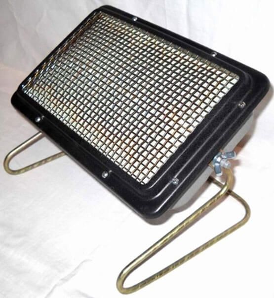 Le principe de chauffage de la première option est basé sur l'utilisation d'une plaque en céramique, qui est saturée d'énergie du radiateur. Le gaz brûle dans le brûleur, l'émetteur de type infrarouge extrait de l'énergie et la plaque en céramique génère de la chaleur, assurant le chauffage. Le radiateur infrarouge à gaz est moins populaire, car il a un faible rendement de 50 %. L'avantage des chauffe-tentes en céramique à gaz est leur coût abordable, ce qui rend ces appareils plus demandés.