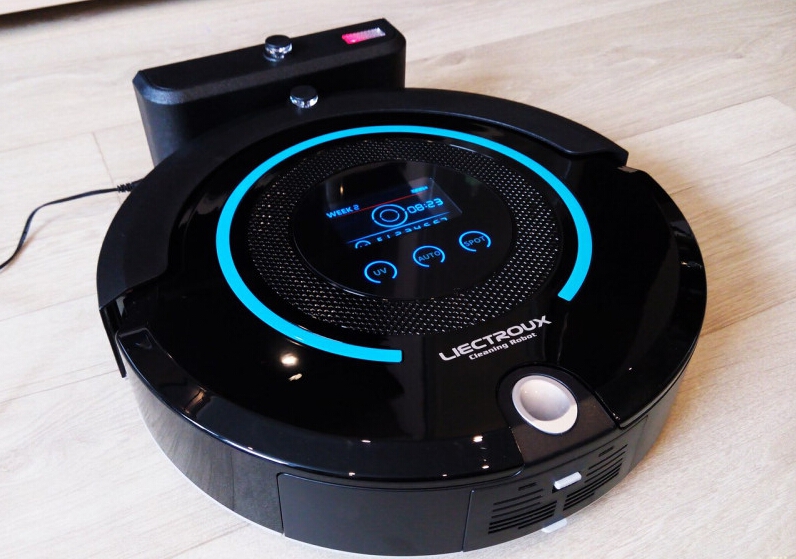 Un aspirateur puissant qui peut nettoyer les sols durs et les tapis, ainsi que les surfaces de nettoyage humides. De plus, il désinfecte la pièce avec une lampe ultraviolette. Le gadget a l'air solide. Son corps est en plastique ABS brillant. Les utilisateurs aiment l'équipement de l'appareil. Il y a des brosses de rechange, des filtres, des serviettes. Mais l'essentiel est le limiteur de trafic. Le mur virtuel est une chose très pratique! Ceci est confirmé par les avis sur Aliexpress.