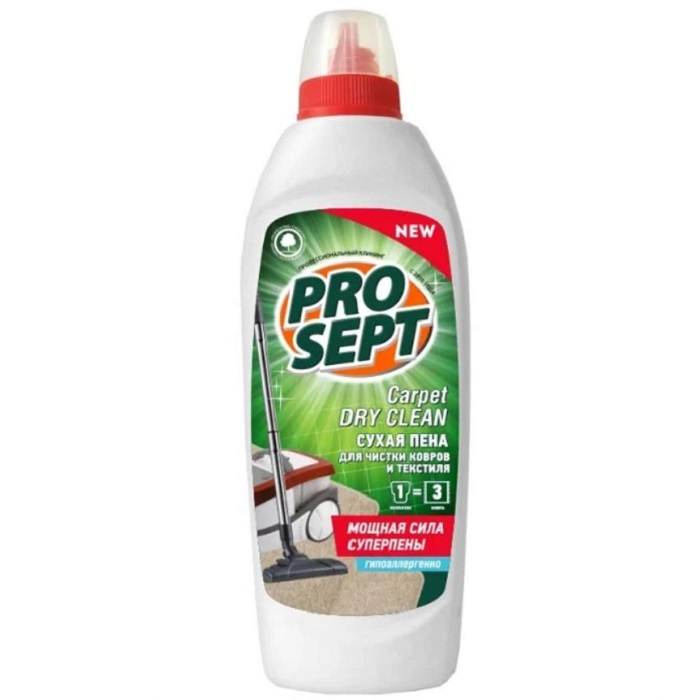 Carpet DryClean convient pour éliminer la saleté et les odeurs des tapis à poils longs. Le shampooing est dilué avec de l'eau à une concentration de 1:20 à 1:50 - selon la complexité de la tache. La solution finie est fouettée dans une mousse sèche et appliquée sur la surface à traiter.