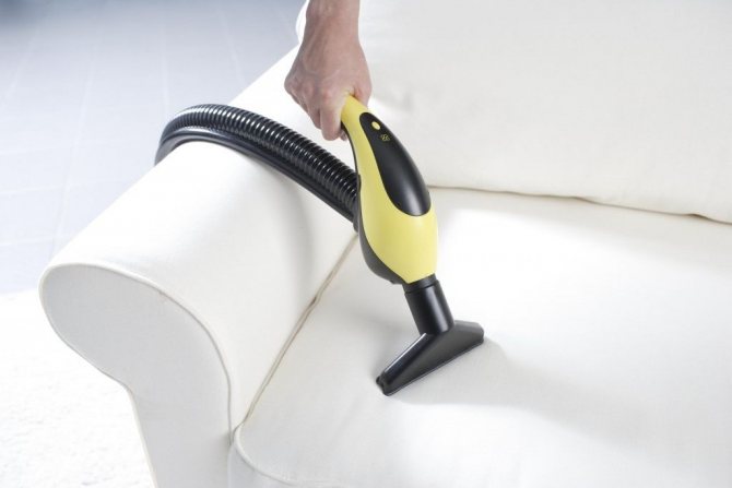 Si nous parlons de nettoyer les meubles rembourrés, alors avant de commencer le travail, vous devez également le nettoyer de la poussière et de la saleté. Pour cela, recouvrez le meuble d'un grand torchon humide. La feuille sera la meilleure option. Après cela, commencez à éliminer la poussière. Il va donc se déposer sur un chiffon humide. Ou vous pouvez utiliser un aspirateur avec une buse spéciale. Lorsque la poussière a été dépoussiérée, un produit de nettoyage est appliqué selon les instructions du fabricant. Et à la fin, les meubles devront être aspirés.