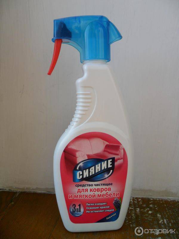 Pour éliminer les taches, les produits sous forme de spray conviennent. Les sprays sont généralement disponibles dans des conteneurs avec un flacon pulvérisateur. Lorsque le produit est appliqué sur la tache, une mousse se forme qui corrode la tache. Ainsi, le produit reste sur la zone contaminée pendant une courte période de temps. Essuyez ensuite avec une éponge ou un chiffon humide. La procédure est répétée jusqu'à ce que la pollution soit éliminée.