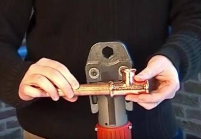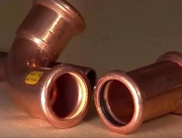 - Un raccord à sertir reliant les éléments d'une canalisation en cuivre est très rarement utilisé. Pour l'installation, vous avez besoin d'une presse spéciale, qui n'est pas bon marché. Cela n'est acceptable que lorsqu'il n'est pas possible de connecter les tuyaux d'une autre manière.