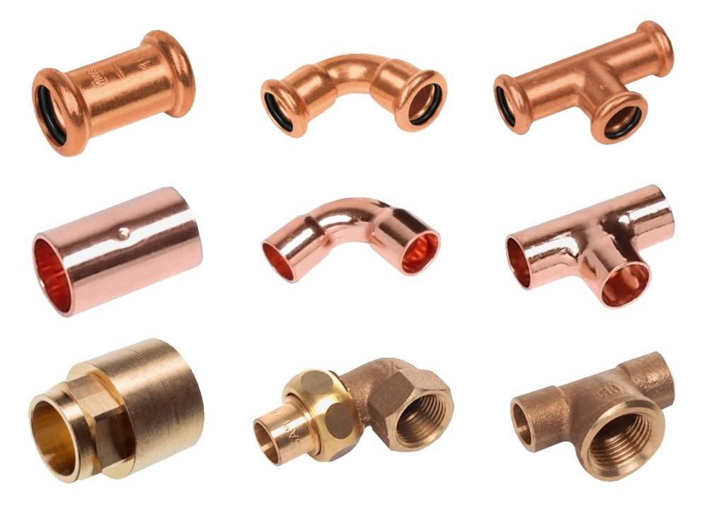 Avec l'option de connexion détachable, l'utilisation d'un raccord fileté ou à compression est acceptable. Pour une connexion permanente, il est préférable d'utiliser des raccords capillaires ou à sertir. Leur tâche principale dans un pipeline à quelque fin que ce soit est de fournir des branches, des virages, la connexion de deux tuyaux de diamètres identiques ou différents. Sans raccords, un haut niveau d'étanchéité du système de chauffage, de climatisation ou de plomberie ne peut pas être atteint. Tout comme les tuyaux, ils ont une ductilité et une résistance à la corrosion élevées, sont faciles à installer et fonctionnent pendant longtemps sans nécessiter de réparation.