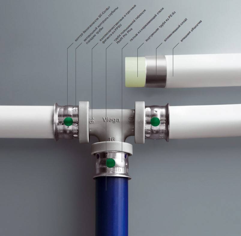 Les tuyaux en métal-plastique résistent aux températures et aux pressions élevées, ce qui est particulièrement important pour le chauffage. Cependant, avec des différences dans ces paramètres, les raccords commencent à fuir.