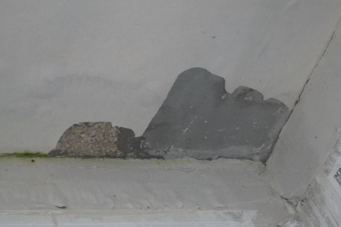 - Retirez la vieille peinture et une couche de plâtre humide d'une surface humide avec une spatule. Il est pratique d'effectuer des travaux préparatoires à l'aide d'une spatule large. Si pendant le processus de décapage, l'armature nue a été ouverte, elle est également nettoyée, recouverte de deux couches de peinture.