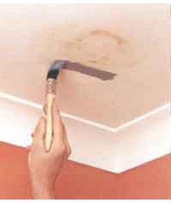 S'il ne reste aucune infection fongique lors de l'écoulement du plafond ou du toit, la surface peut être lavée à l'eau, poncée et appliquée avec le revêtement de votre choix. La chaux ou la peinture sont recommandées pour choisir une structure épaisse et dense, afin de ne pas peindre plusieurs fois.