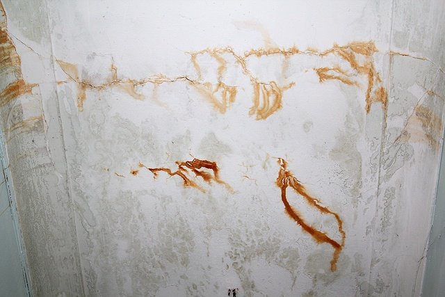 Le moyen le plus simple d'éliminer les traces d'inondation au plafond est de peindre ou de badigeonner les traînées jaunes.