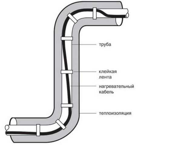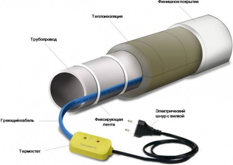 Allumez le câble chauffant à une température de + 5 degrés à l'intérieur de l'alimentation en eau. Lorsque la température ambiante baisse, la résistance sur le fil augmente, ainsi, la température de l'eau souhaitée est maintenue dans le système d'alimentation en eau.