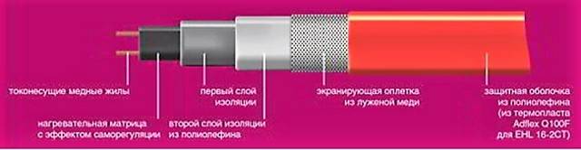 - Type de couche protectrice. Lors de la réalisation de mesures d'installation dans des structures anti-givrage, le dispositif de chauffage doit être recouvert d'une gaine de protection en thermoplastique ou en polyoléfine, résistante aux rayons ultraviolets. Pour la pose dans l'alimentation en eau, les experts recommandent de privilégier un dispositif thermique recouvert d'une couche extérieure isolante en fluoroplastique.