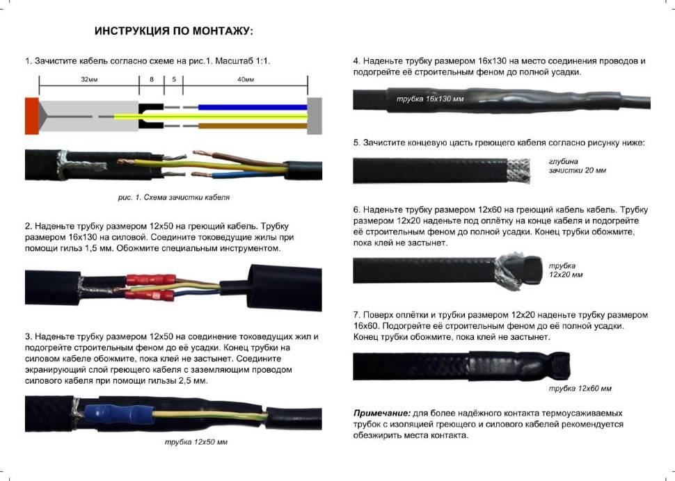 - Un ensemble prêt à l'emploi de câble résistif est vendu dans une longueur fixe, de plus, il n'est pas possible de changer le métrage par vous-même. Le manchon de contact est fabriqué strictement en usine.