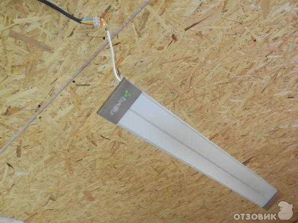 - Installation facile et fonctionnement simple. Il suffit de fixer le panneau au mur ou au plafond et de le brancher sur une prise de courant. Cela ne nécessite aucune connaissance particulière, machine à souder, etc.