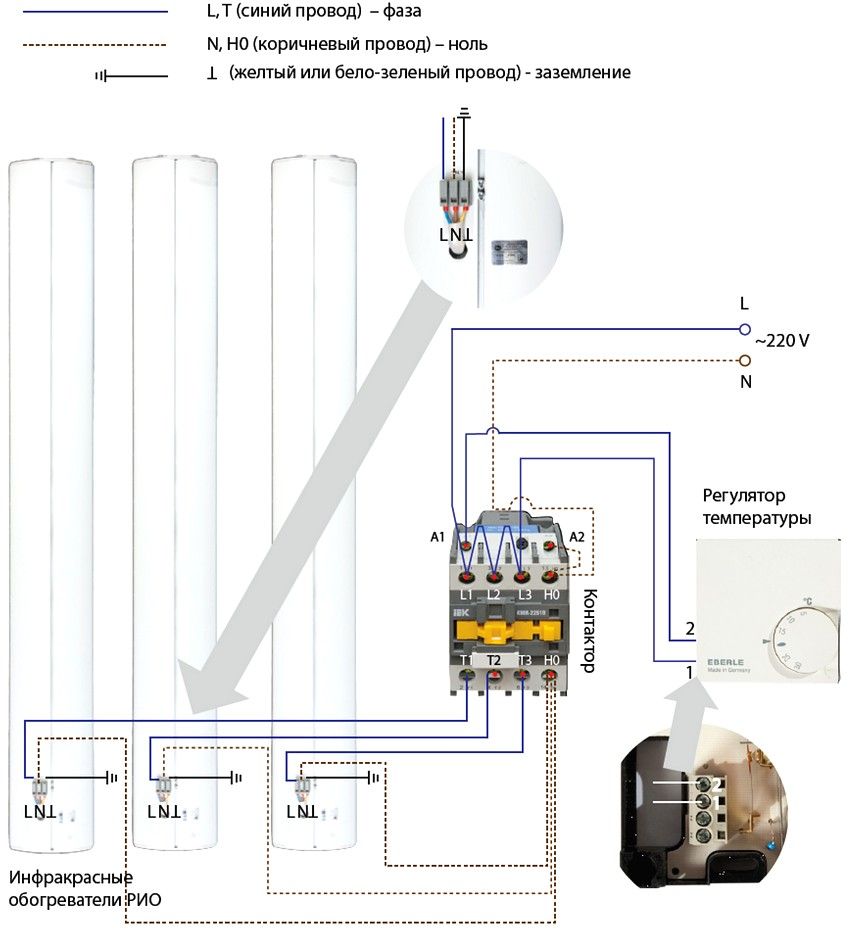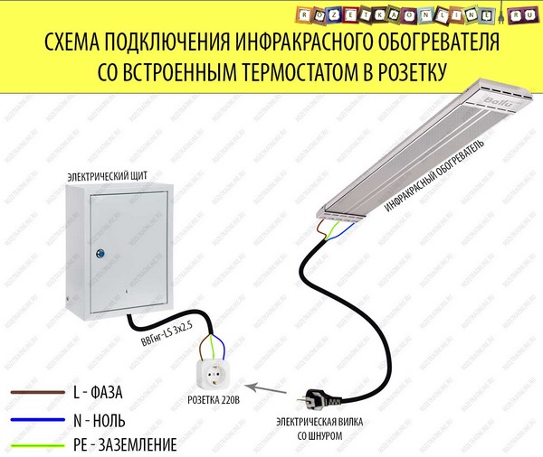 Les lampes à quartz ont une température de chauffage assez élevée. En conséquence, vous pouvez mettre votre vie en danger. Pour effectuer la connexion correctement, vous aurez besoin de schémas de câblage pour le chauffage infrarouge.