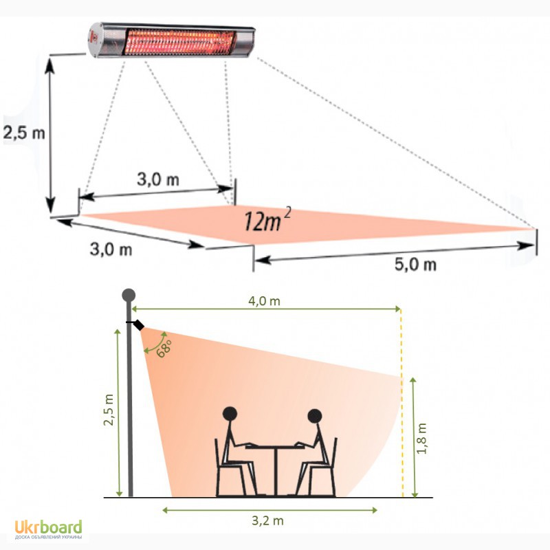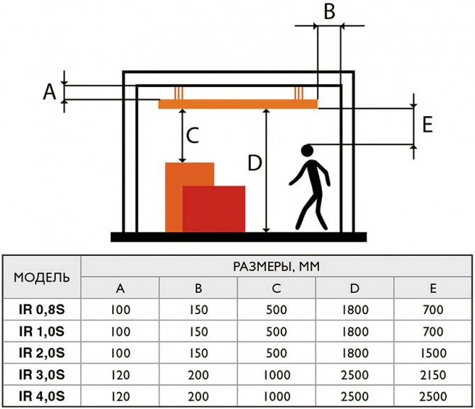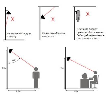 - S'il n'est pas installé correctement, l'espace se réchauffera dans la mauvaise zone qui devrait être traitée en premier lieu. Le rayonnement infrarouge est caractérisé par un segment d'action clairement défini.