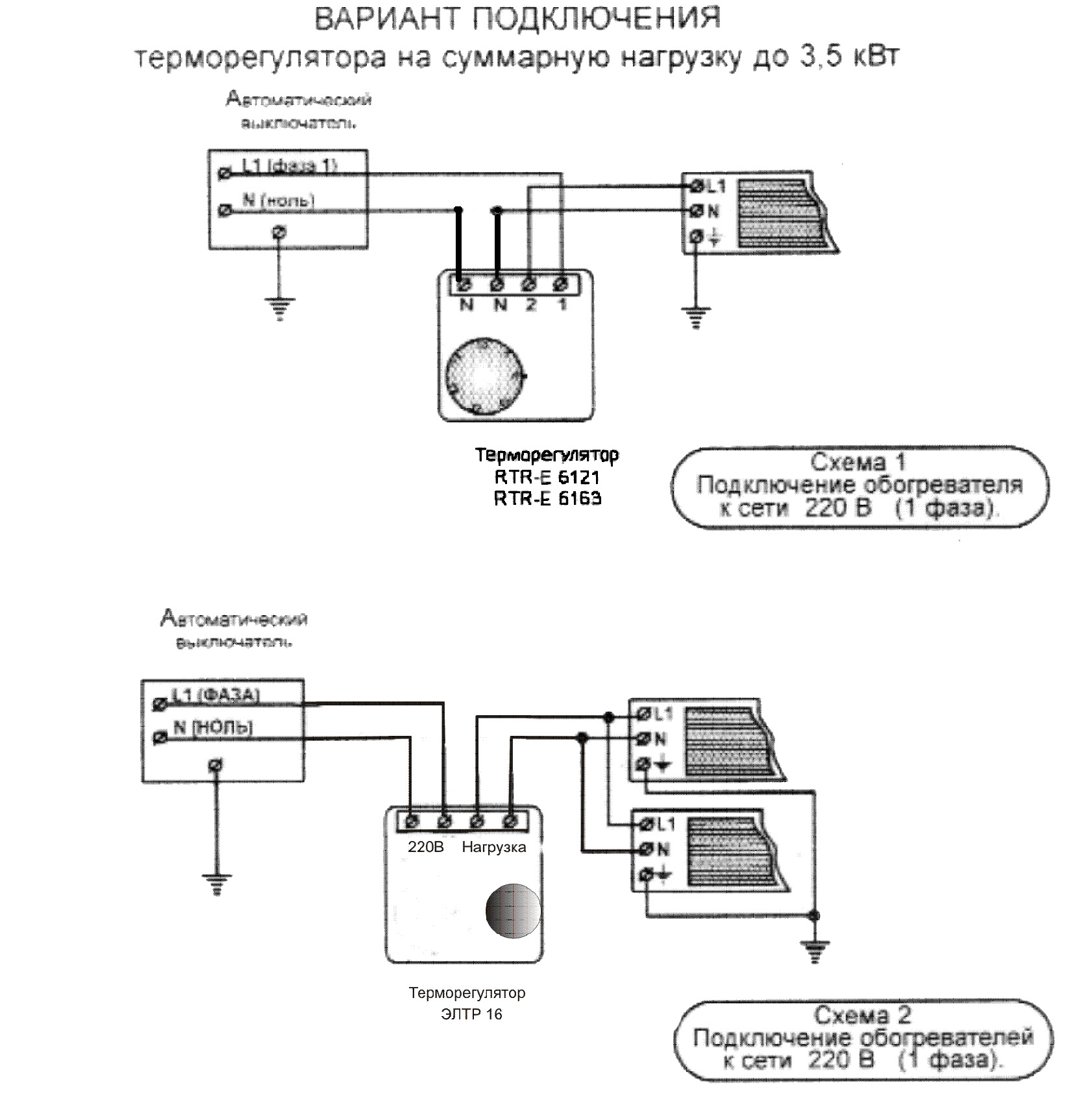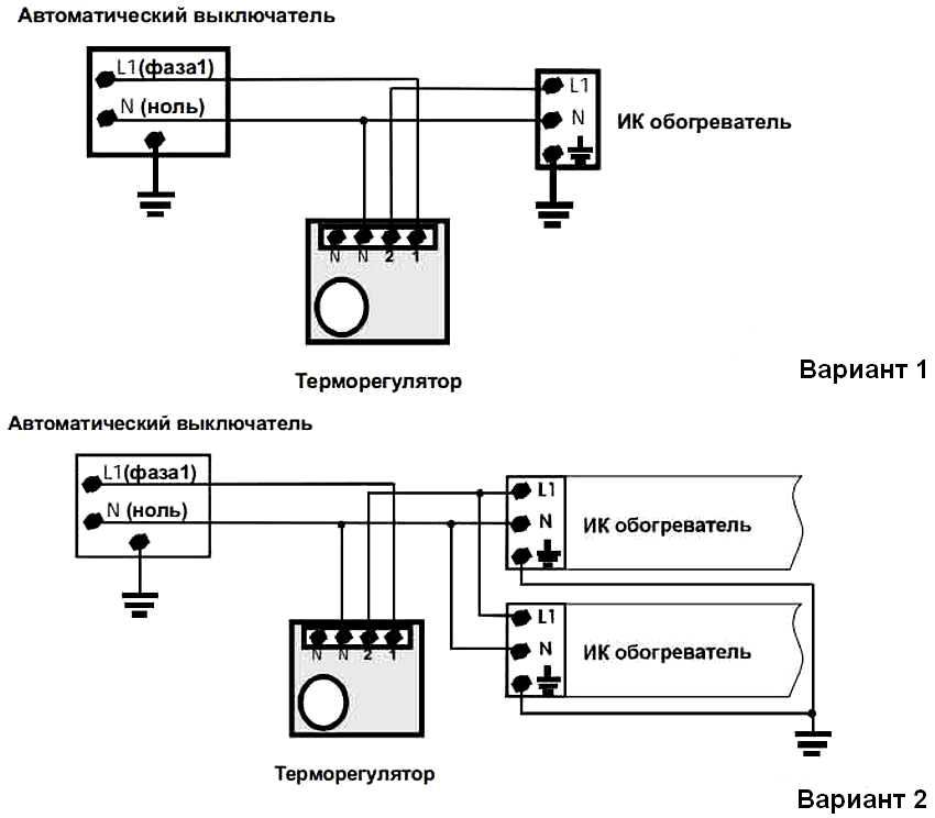 Schéma de connexion d'un radiateur infrarouge à un thermostat