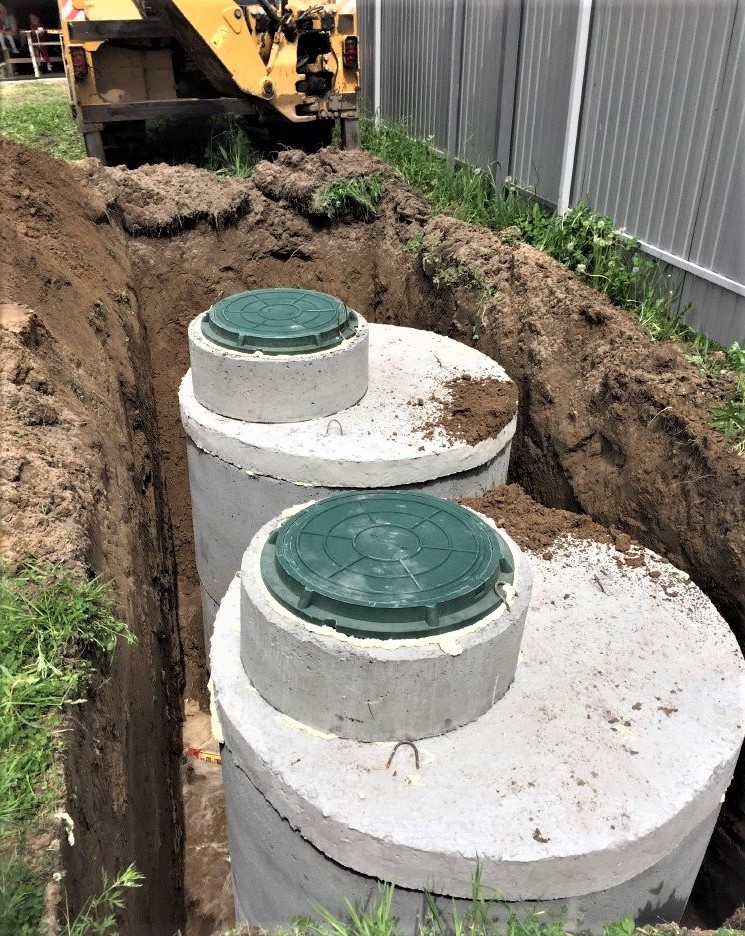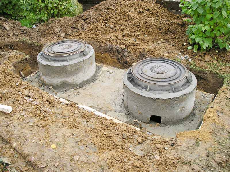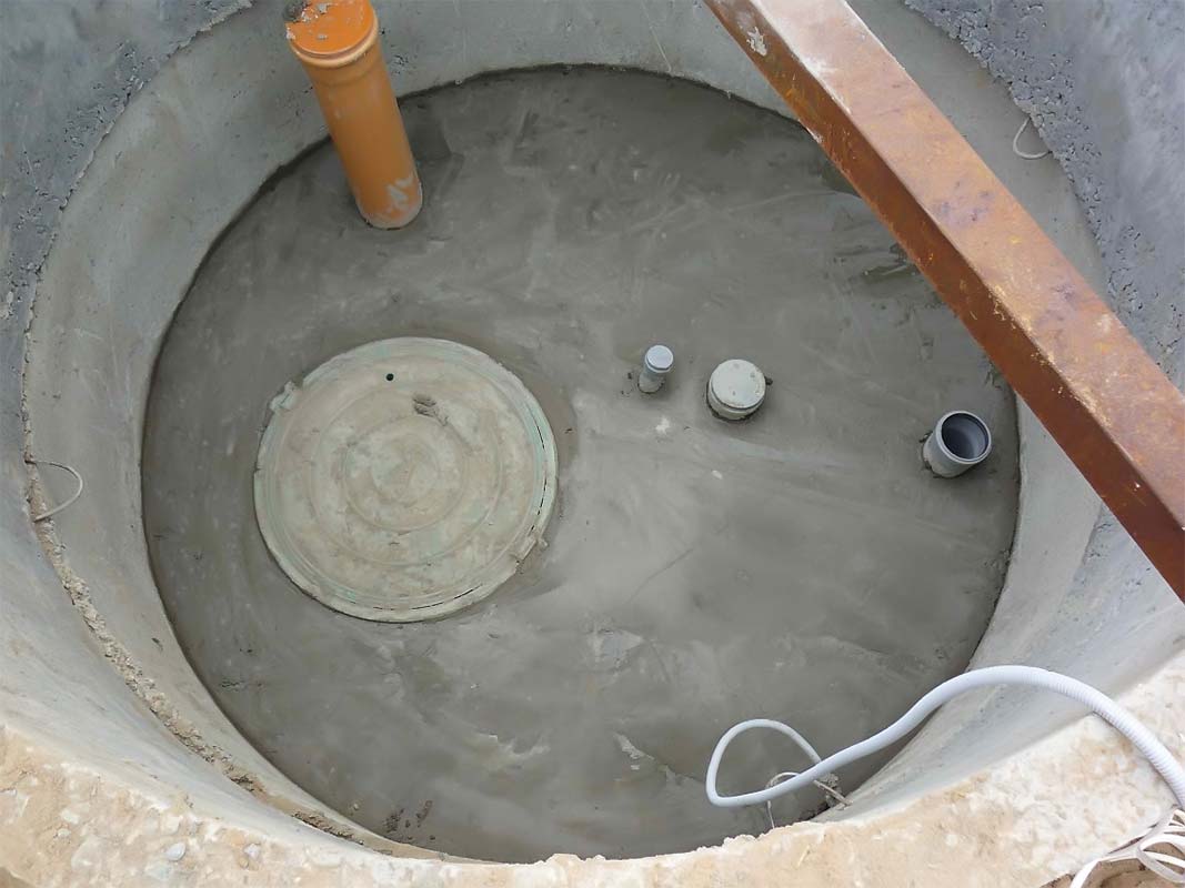 Une fosse septique à chambre unique constituée d'anneaux en béton convient à une petite quantité d'eaux usées