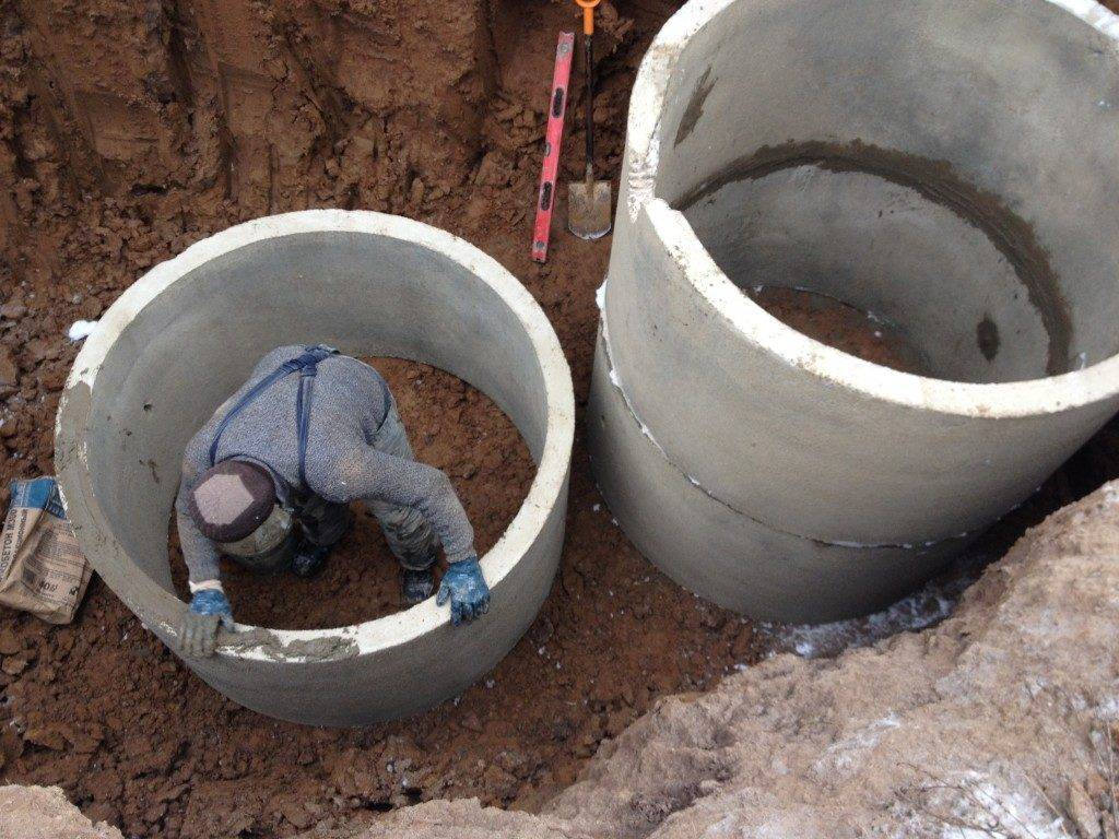 Les anneaux pour la construction d'un puisard d'égout peuvent être installés à l'aide d'équipements de construction ou manuellement