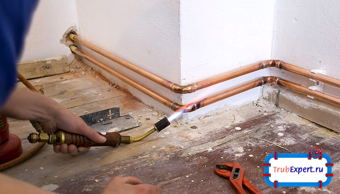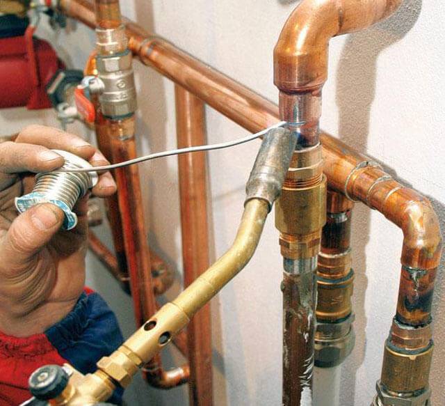 L'installation du pipeline à l'aide de tuyaux en cuivre est tout à fait réalisable de vos propres mains. Pour ce faire, utilisez un brûleur à gaz et une soudure, qui est de deux types - dur et doux. La soudure dure est utilisée pour la soudure à haute température dans les communications pour l'approvisionnement en eau, le gaz et le chauffage. Doux - pour souder à des températures plus basses dans des conditions domestiques.