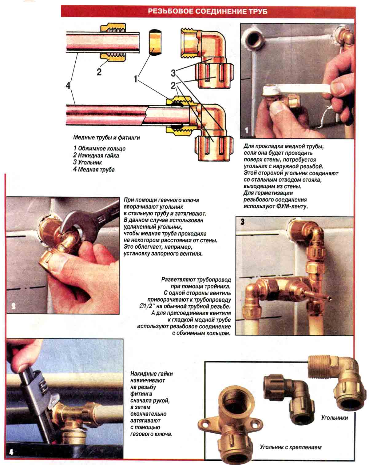 Pour assembler des tuyaux en cuivre avec des tuyaux en d'autres matériaux, des raccords filetés en bronze ou en laiton sont utilisés. Leur utilisation élimine la possibilité de corrosion galvanique.Dans le cas où les tuyaux diffèrent en diamètre, recourir à l'aide d'expanseurs spéciaux.