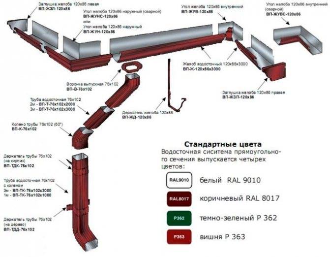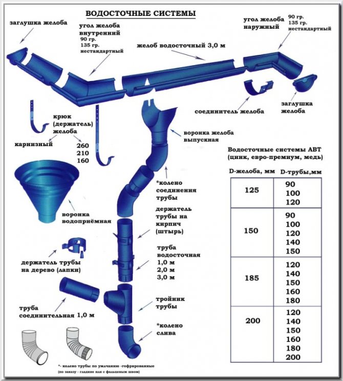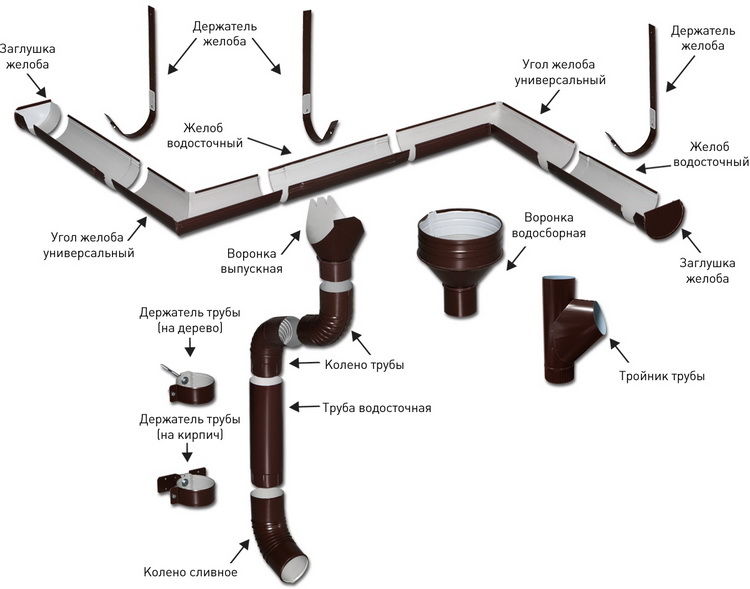 Les systèmes de gouttières sont fabriqués dans diverses variantes, cependant, les caractéristiques de leur structure sont généralement communes et consistent en les mêmes éléments :