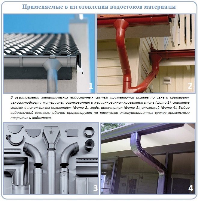 Les gouttières en acier revêtues de polymère se sont avérées excellentes, elles se distinguent par d'excellentes caractéristiques de résistance. Mais il vaut mieux confier l'installation de tels produits à des professionnels, de plus, il peut y avoir quelques difficultés de transport. Le titre de la classe premium est légitimement attaché aux gouttières en métaux non ferreux (titane-zinc et cuivre), mais tout le monde ne peut pas se le permettre.