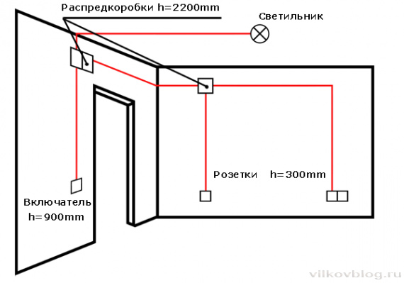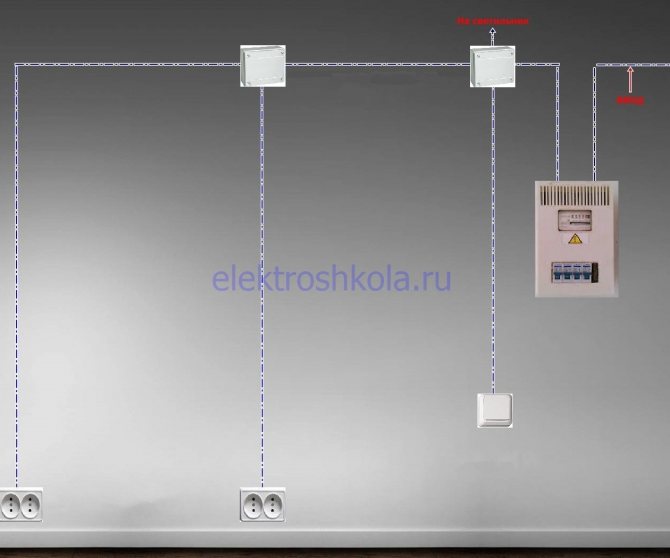 Un schéma d'alimentation typique d'il y a 30 à 40 ans est la connexion de toutes les prises via des boîtes de jonction à 1-2 lignes de câblage. Étant donné que la charge des équipements électriques a considérablement augmenté, ce schéma devient inacceptable. N'oubliez pas qu'un disjoncteur qui contrôle l'alimentation de toutes les pièces en même temps ne protégera pas une liaison réseau distincte contre les surcharges.