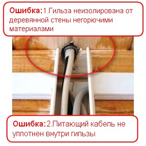 Pour la pose cachée sur des surfaces combustibles, le PUE prescrit l'utilisation d'un tuyau métallique. Ceci, bien sûr, est un peu cher, mais dans ce cas, le volume de travail caché est faible, ce qui signifie que les coûts augmenteront légèrement.