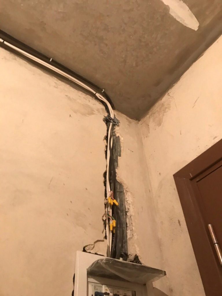 Câblage ouvert dans l'appartement.