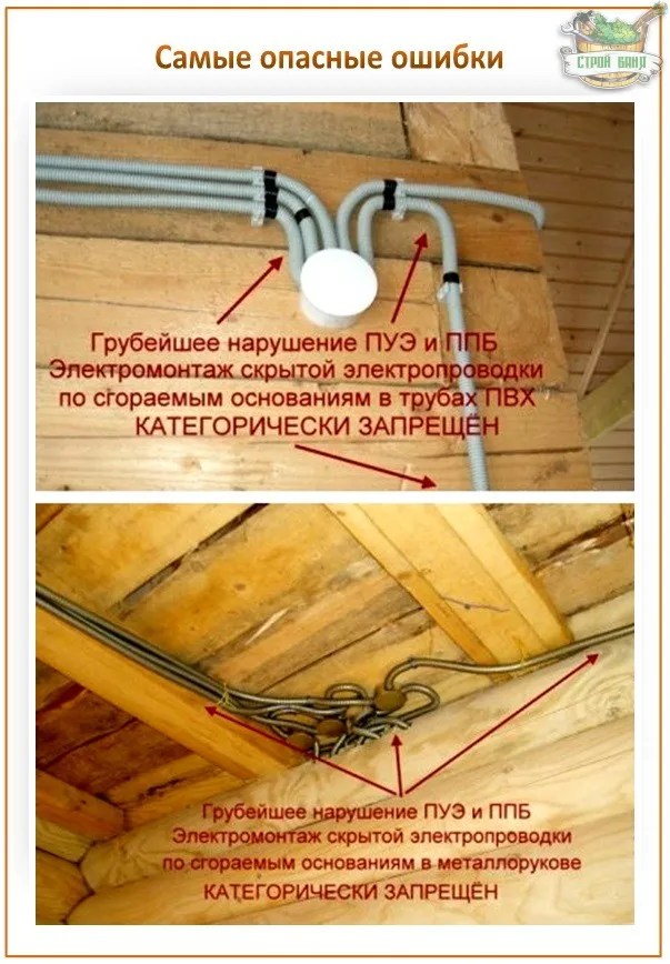 Que ne peut-on pas dire des maisons à ossature bois. Ici, il est conseillé d'installer un réseau électrique de type ouvert. Depuis - il s'agit d'un certain risque d'allumage accidentel de l'électricité en cas de dysfonctionnement ou de non-respect du PUE lors de l'installation.