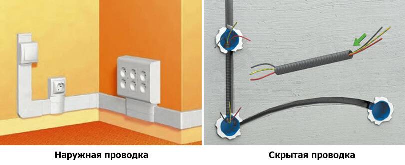 Il existe deux options de câblage - fermé et ouvert. La première option est pratique et esthétique, car les communications ne sont pas visibles à la surface des murs, des sols et des plafonds. Cette méthode peut également être appliquée dans les appartements et les maisons en structures en béton.
