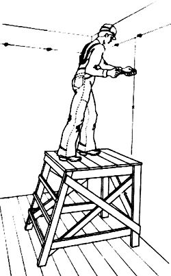 La pose du câblage électrique sous le plafond doit se faire uniquement depuis la plate-forme : les chaises ou les tables ne sont absolument pas adaptées.
