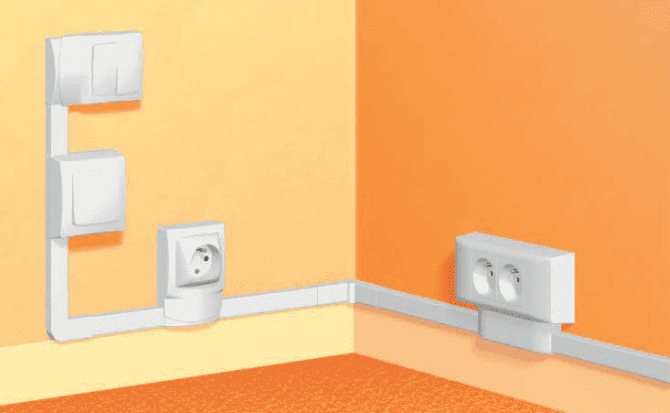 La manière la plus esthétique de poser un câblage électrique ouvert consiste à l'installer dans des plinthes décoratives. À la base, cette méthode est assez simple, mais il convient de garder à l'esprit que vous devrez acheter un scellant non combustible supplémentaire. Étant donné que la plupart des plinthes brûlent magnifiquement et brillamment. L'utilisation d'un tel matériel est tout simplement nécessaire. Les fils électriques chauffent souvent et personne n'est à l'abri d'un court-circuit. En utilisant cette option d'installation, vous obtenez un câblage électrique complètement invisible à l'œil, mais le facteur de sécurité du boîtier diminue considérablement.