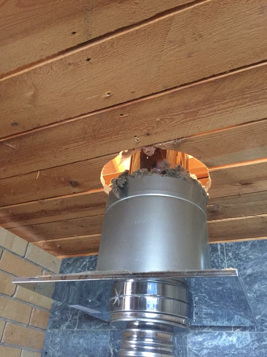 - L'espace entre le plafond et la cheminée est isolé avec des matériaux résistants au feu. Il faut savoir qu'il est interdit de joindre des éléments aux endroits où ils traversent le sol.