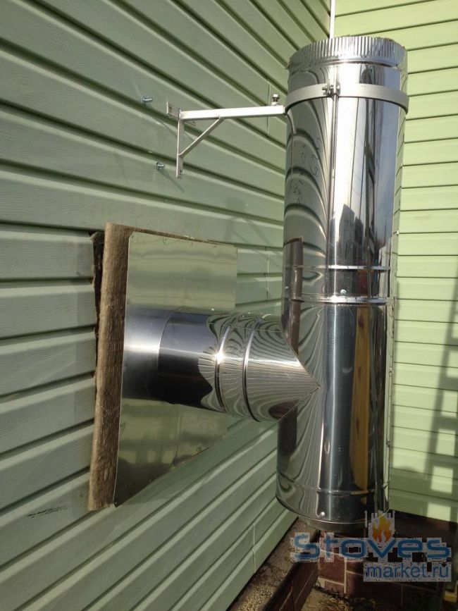 Assemblage et installation de la cheminée à travers mur à faire soi-même Il est fabriqué si, en raison des caractéristiques de conception du toit, il est impossible de faire des trous. De plus, une telle installation permettra d'économiser l'espace intérieur de la pièce.
