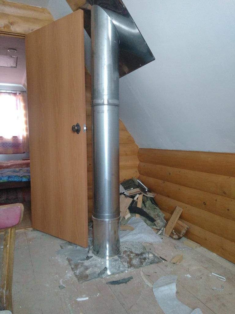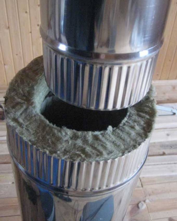 - Les plafonds, les poutres, les murs aux endroits où un tuyau sera posé le long d'eux sont isolés. Dans ce cas, un espace doit subsister entre les surfaces et la cheminée.