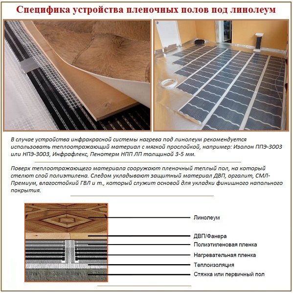 Lors du choix d'un sol en film, vous devez faire attention à la consommation électrique de la structure, aux conditions de température et aux paramètres environnementaux.