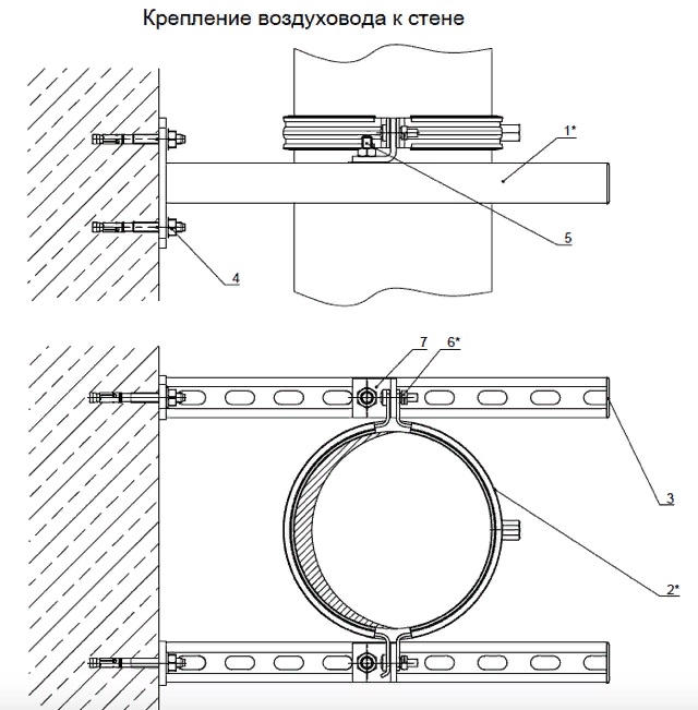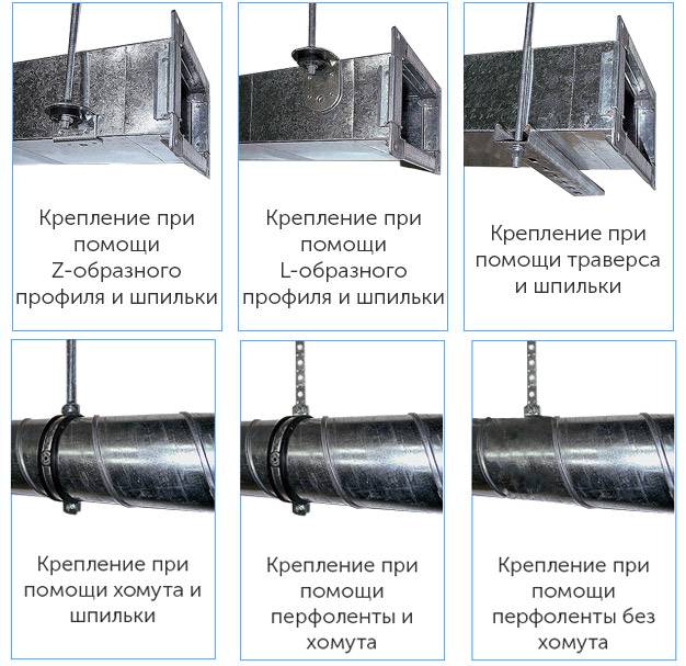 SP 60.13330 et SP 73.13330.2012 indiquent comment calculer la fixation des conduits d'air carrés et ronds. Les recommandations des fabricants d'équipements, prescrites dans les instructions, sont également prises en compte. Pour obtenir le bon résultat, vous devez connaître la longueur des conduits et la distance autorisée entre les fixations.