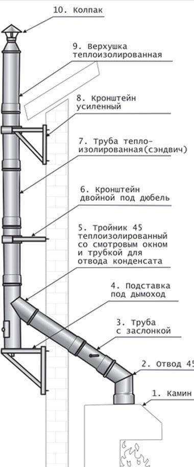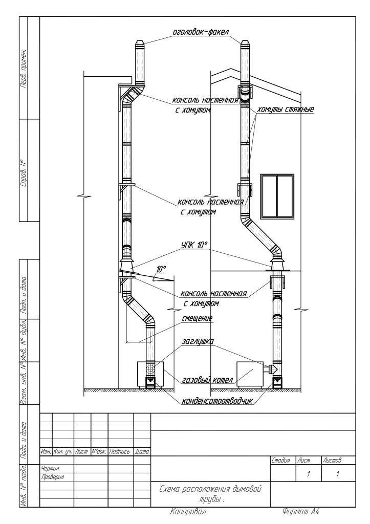 - si le tuyau est à plus de trois mètres du faîte, le trou est affiché le long de l'angle de 10 degrés par rapport à l'horizon avec le sommet sur le faîte du toit ;