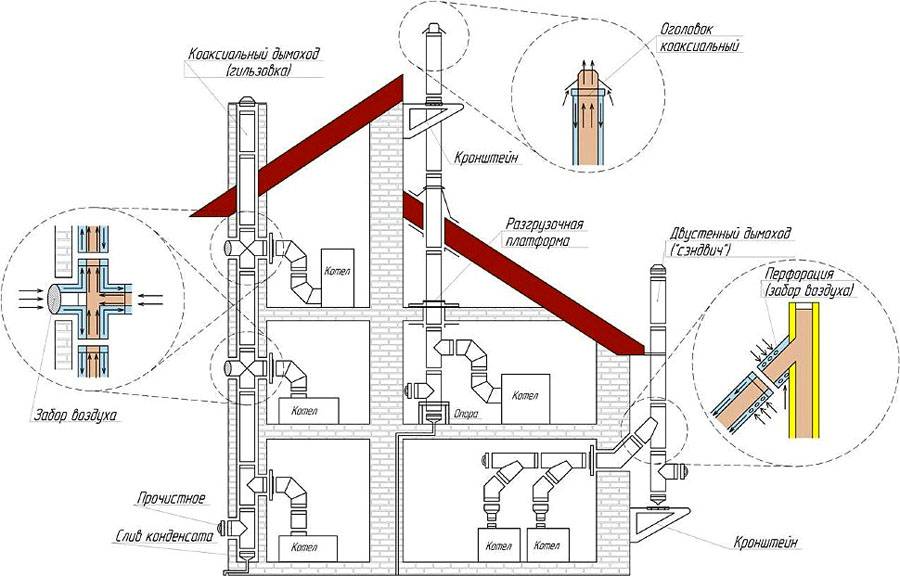 - sur un toit plat, la hauteur du tuyau est calculée selon un tableau spécial, mais elle ne doit pas être inférieure à 50 cm.