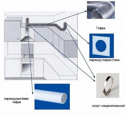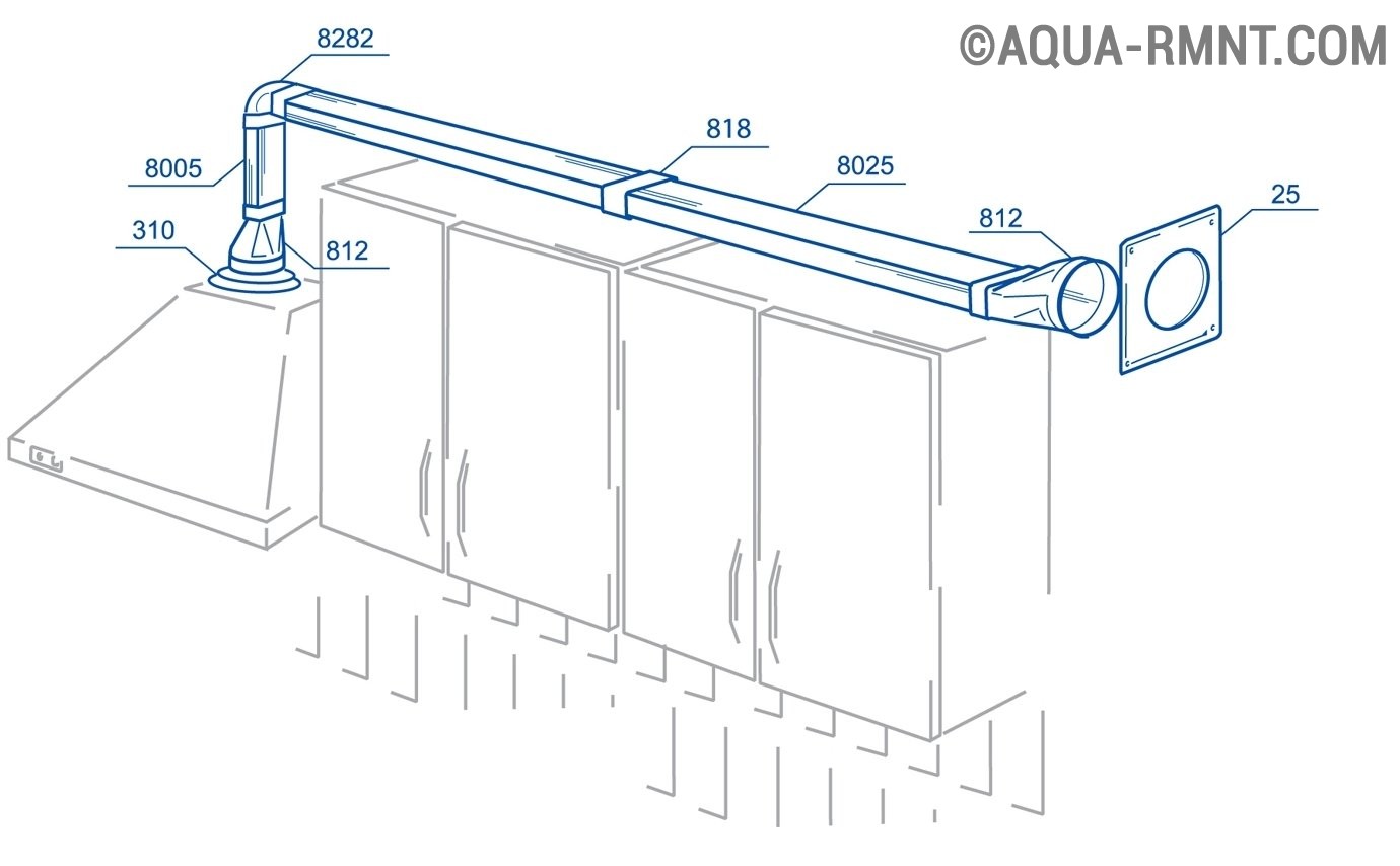 Rappelez-vous également qu'il est impossible de surestimer le diamètre du conduit par rapport au tuyau de sortie sur la hotte. Sinon, les vibrations et le bruit seront si forts que la structure devra être recollée tous les mois.